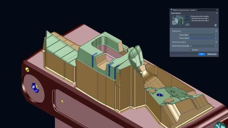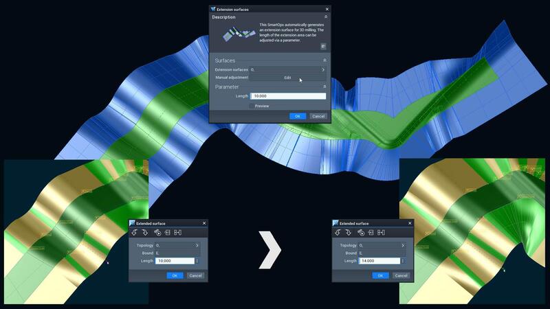 即使是复杂的CAD功能,比如扩展复杂的自由曲面,也可以集成到SmartOps(超级模板)中。这个例子展示了如何快速且轻松地调整自动扩展区域的宽度